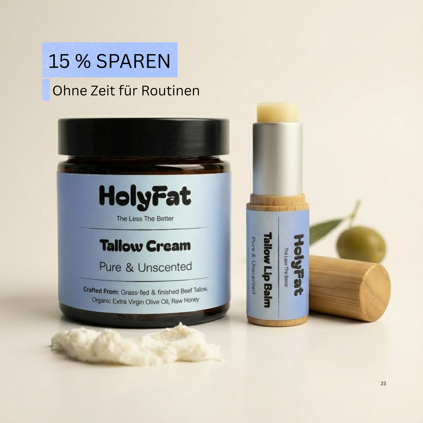 Gift set containing our hydrating Tallow Cream and a Lip Balm. For soft skin and lips. Thoughtful gift for him